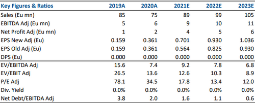 - EBIT a 1,1 milioni (-0,1 milioni nel primo trimestre 2020), contro la nostra stima di 0,7 milioni;