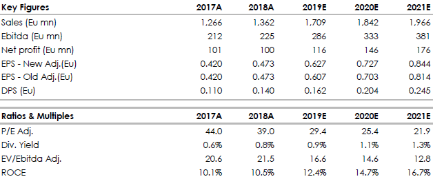 Il gruppo punta a lanciare la propria linea produttiva in Olanda, Germania, Francia e Australia e il suo multichannel eco-system negli Stati Uniti nel corso del 2019. Vediamo inoltre positivamente il recente annuncio di una Joint Venture in Cina (51% detenuto da Amplifon e operante attraverso 30 punti vendita localizzati nell’area di Beijing, si stima possa generare ricavi per 6 milione di euro circa nel 2019).