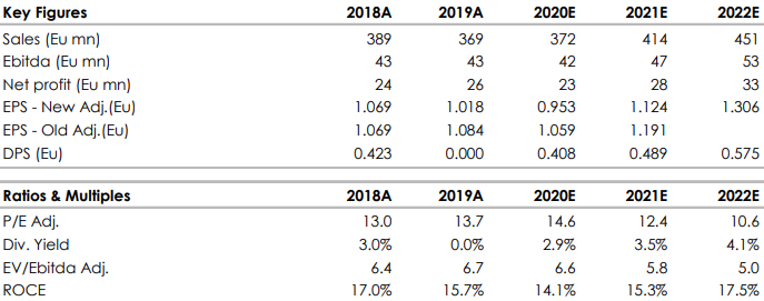 Abbiamo leggermente rivisto le stime in via cautelativa per incorporare un leggero rallentamento dell’attività produttiva nel corso del 2020.