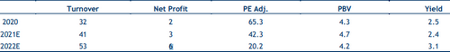 I profitti netti 2021 dovrebbero attestarsi a 3 milioni (2 milioni nel 2020) e raggiungere i 6 milioni nel 2022.