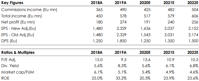 Questo trend conferma il solido posizionamento della società nell’industria del wealth management in Italia. Le nostre assunzioni per l’anno incorporano un calo della raccolta nei prossimi mesi, ma potrebbero rivelarsi caute. Ci aspettiamo che la raccolta sia guidata dalla crescita organica e dalle nuove assunzioni, visto il buon posizionamento del gruppo nel private banking italiano.