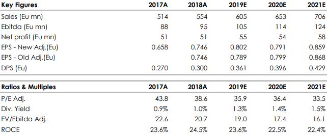 La posizione finanziaria netta a fine dicembre era pari a 30 milioni da 14,5 milioni alla fine del 2018 grazie alla generazione di cassa dell'attività operativa, alla gestione del capitale circolante commerciale e ai progetti d'investimento in corso.