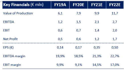 Sul fronte marginalità, l’Ebitda rettificato è stato pari a 1,5 milioni di euro (1,3 milioni nel 2018), mentre l’Ebit adjusted ha raggiunto la cifra di 0,9 milioni (0,78 milioni nell’esercizio precedente).