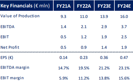 Per il 2024 il fine tuning ha portato ad un upgrade del 4,9% del VoP, dell'1,4% dell'Ebitda e dell'8,8% dell'Ebit. È atteso un CAGR 2021-25 del valore della produzione del 17,4%.