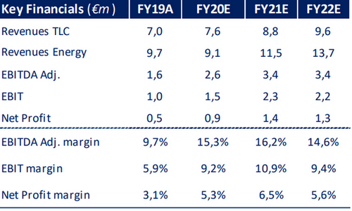 Integrae stima, per il 2020, che la BU TLC generi ricavi pari a 7,6 milioni di euro, mentre BU Energy 9,1 milioni.
