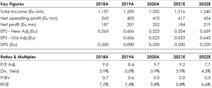 Durante la conference call, il CEO ha descritto l’outlook per il 2021. Il margine d'interesse è atteso in crescita di circa il 2%, non includendo un possibile incremento del take-up di TLTRO III (che la banca sta analizzando); i ricavi da commissioni dovrebbero crescere del 2/3% grazie ad una buona performance del risparmio gestito e del business assicurativo; sul fronte costi operativi, la banca ha comunicato che si attende una leggera crescita sull'anno (circa il +1%), mentre il costo del rischio è atteso in linea con il 2020. Sul dividendo, il CEO ha confermato che verrà corrisposto a maggio. Infine, il CEO ha confermato che la banca guarda con attenzione al mercato per eventuali operazioni di M&A.