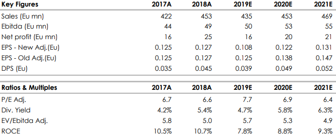 La nostra valutazione stima un P/E di 7,7x e un rapporto EV/EBITDA pari a 5,7x sulle previsioni 2019, che consideriamo attraenti per un investimento di medio periodo.