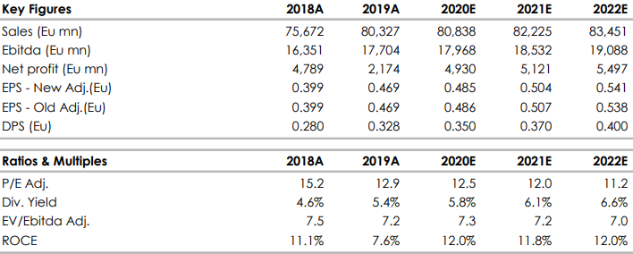 EBIT a 3.109 milioni di euro (2.981 milioni di euro nel primo trimestre 2019, +4,3%)