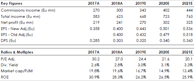 Manteniamo una raccomandazione Neutrale ma alziamo il target premiando i buoni risultati e in seguito alla recente debole performance di borsa rispetto ai competitor. Riteniamo che la società abbia le carte in regola per dimostrarsi più resistente delle altre società del mondo asset management alla crescente volatilità del mercato. Siamo ottimisti sulle prospettive anche se il titolo Fineco viene scambiato in borsa con un premio significativo rispetto alla media del comparto, che riteniamo giustificato da un modello di business sostenibile.