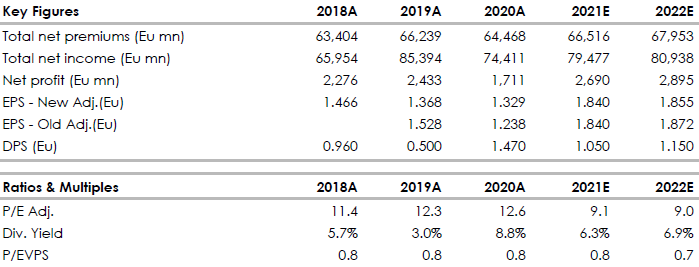 Risultati positivi e indicazione sul dividendo sopra le attese portano ad uno yield dividend di quasi il 9%. I risultati 2020 sono nel complesso migliori e con indicazioni molto positive a livello di capitale e di posizione di liquidità che giustificano il pagamento dei dividendi annunciato.
