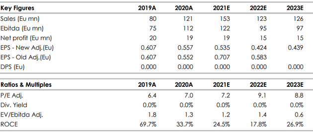 La leva finanziaria dovrebbe essere solida nel 2022 (il progetto Arctic Friend non richiede ulteriori investimenti) e ancora di più nel 2023.