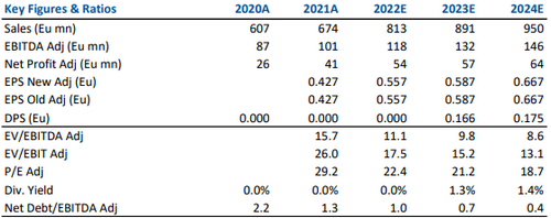 Il gruppo ha chiuso l'esercizio 2021 con vendite per 674 milioni di euro e un EBITDA adj. di 101 milioni di euro, pari al 15% delle vendite. Quest'anno si attende una crescita delle vendite del 21% circa su base annua, sopra il livello pre-pandemia.
