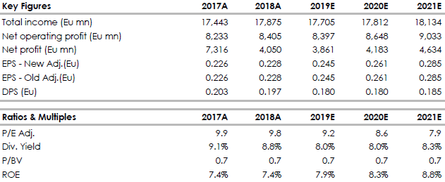 Utile netto pari a 1,05 miliardi, in calo del 16% sul dato dell'anno prima che però comprendeva alcune voci straordinarie. Dato sopra le stime. Confermata l'attesa di un utile 2019 in crescita sull'anno precedente che verrà distribuito per l'80% agli azionisti in base alla politica dei dividendi.