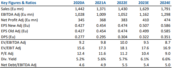 A valle dei risultati semestrali alziamo le stime di EPS 2022 del 2.5% (migliore performance a livello di costi operativi), compensato dal consolidamento di Depa solo per 3 mesi (da 6 mesi in precedenza).
