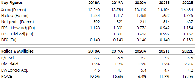 Stime sul debito 2021 (3.2 miliardi) in linea con le stime, assumendo il mancato pagamento del dividendo.
