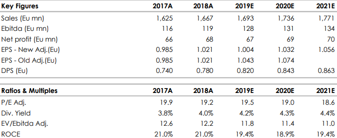 In particolare, i risultati del terzo trimestre 2019 sono stati in linea alle nostre attese, con ricavi trimestrali di gruppo a 509 milioni in crescita del +0,4% sull'anno. La società, sulla base dei trend osservati ad ottobre, ha fornito indicazioni positive sull’ultimo trimestre e sulla chiusura dell’anno. Abbiamo rivisto leggermente in meglio le stime 2019.