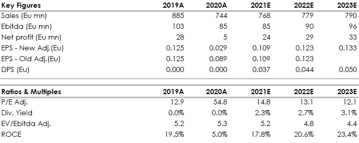 Durante la conference call sui risultati, il management della società ha ribadito l’interesse per attività di M&A con focus sull’area libri e la parte digitale dei media. Ricordiamo che la società ha ampia disponibilità di cassa e lo scorso 12 maggio ha sottoscritto un contratto di finaziamento con un pool di banche per circa 450 mln, di cui 230 mln saranno dedicati alle attività di acquisizioni. La società ha quindi spazio per ampliare la sua market share nel trade (24.8% a fine 2020) e nell’educational (22.1% a fine 2020) nel rispetto dei limiti posti dall’Antitrust (30%).