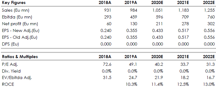 Giudichiamo molto positivamente l'operazione con SIA, anche se gran parte delle novità è compresa nell'attuale prezzo di borsa. Alziamo leggermente il target price da 18 a 19 euro per tenere conto delle sinergie e del futuro potenziale di crescita. La tabella seguente non tiene ancora conto dei dati post-fusione.