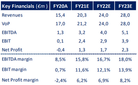 Alla luce dei risultati semestrali, gli analisti hanno modificato le stime. Per il 2021, vedono un valore della produzione pari a 20,3 milioni di euro, con un Ebitda a 3,2 milioni di euro, corrispondente ad una marginalità del 15,8%.