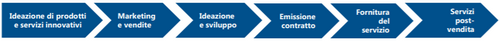 Il processo si conclude con la fase post vendita dedicata al supporto dei clienti e al costumer care.