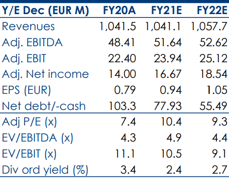 Gli analisti hanno modificate le stime sul 2021-2022, per incorporare la profittabilità della divisione shipping, l’alta generazione di cassa, e il contributo della Joint Venture con Agricola Azzurra