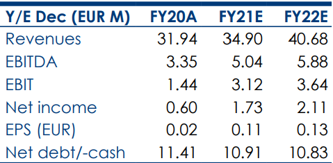 La PFN è stata pari a 10,54 milioni di euro (11,41 milioni di euro al 31.12.2020).