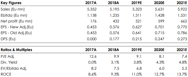 I risultati sono stati abbastanza allineati alle attese, ma adattiamo le nostre stime per riflettere le principali nuove indicazioni date dal management: abbassiamo leggermente le nostre stime al 2019/2020 del -1% per EBIT normalizzato e del -1% per l’EPS, su entrambi gli esercizi. Lo sblocco delle trattative Usa/Cina sui dazi dovrebbe fornire qualche sollievo almeno nel breve periodo. Alla luce delle novità e della nuova guidance manteniamo un approccio cauto.