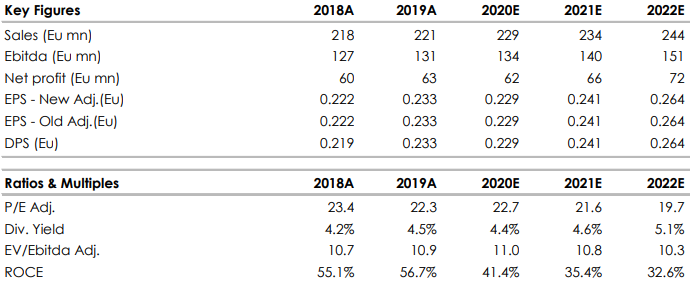 Il nostro target price su Rai Way di 7 euro riflette una valutazione fondamentale DCF di 6,20 euro (12,9-12,3 volte il rapporto fra valore d’impresa ed Ebitda stimato per il 2020 e 2021) e un upside di circa 0,80 euro per azione legato alle sinergie pro quota dall’eventuale combinazione con EI Towers. Dopo il rally di venerdì, Rai Way tratta ora a circa 12,4-12,2 volte il rapporto fra valore d’impresa ed Ebitda 2020-21 e un dividend yield del 3,9% sul 2020.