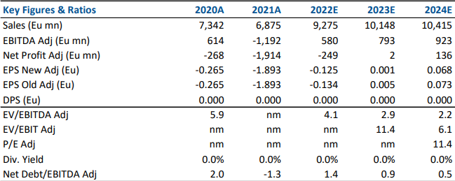 L'Ebitda adjusted è pari a 321 milioni, includendo le discontinued operations, pari al 7,2% dei ricavi, rispetto ad una perdita di 266 milioni di euro nel primo semestre del 2021.