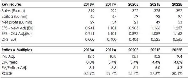 La maggior parte delle variazioni nelle nostre stime per 2021 e 2022 riflettono l'acquisizione di Delta. Abbiamo anche aggiustato le nostre previsioni di marginalità secondo prospettive più realistiche.