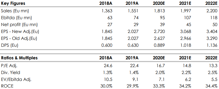In particolare, Sesa ha archiviato il secondo trimestre, terminato a fine ottobre, con una profittabilità superiore alle attese. Il management ha confermato le previsioni molto positive sulla seconda parte dell’anno. Confermiamo la nostra visione positiva sul titolo e alziamo le nostre stime (del 3,5% sull’utile), perché stimiamo margini più alti.Nonostante la recente performance positiva, il titolo tratta ancora a multipli attraenti (7 volte l’Ebitda dell’anno in corso).