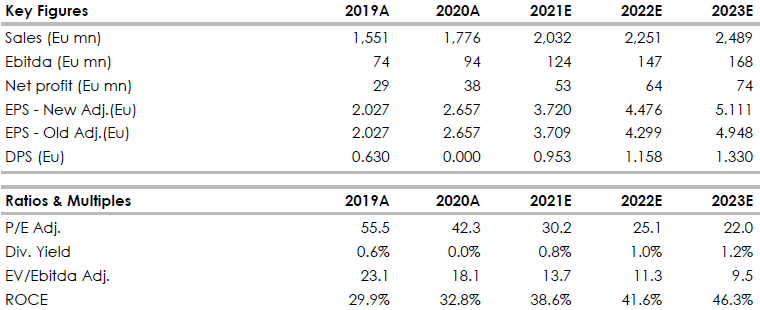Alla luce delle buone indicazioni, abbiamo rivisto al rialzo le nostre stime (+4,1%/+3,3% a livello di utile per azione 2021/2022).