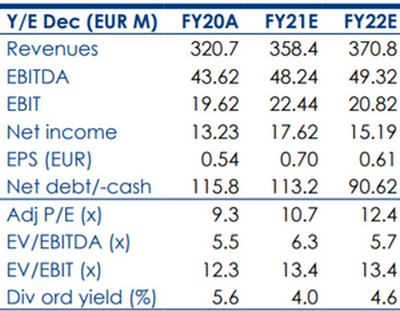 Nell'ultimo studio pubblicato il 14 maggio 2021, viene confermato il giudizio Buy, e alzato il target price a 12,1 euro, dai 11,1 euro precedenti.