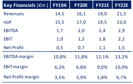 Il gruppo ha archiviato il 2019 con un fatturato pari a 15,5 milioni di euro, +20% su base annua (12,9 milioni di euro nel 2018).