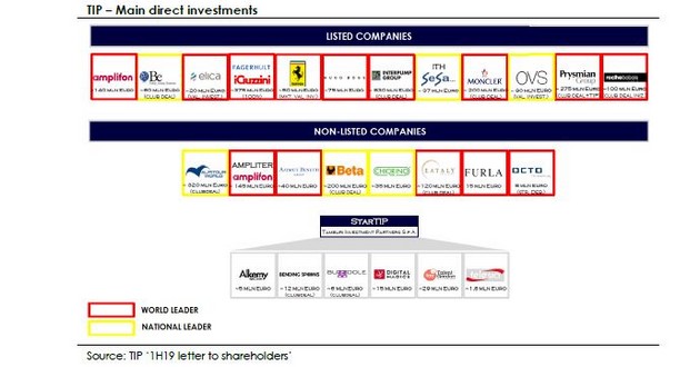 Le società quotate, delle quali Tip detiene quote azionarie, hanno presentato andamenti positivi, a partire da Amplifon, BE, Ferrari, Interpump, Moncler, Prysmian, Hugo Boss.