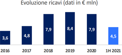 La società ha chiuso il primo semestre 2021 con un Valore della Produzione pari a 5,23 milioni (+37,2% rispetto al 30-06-2020).
