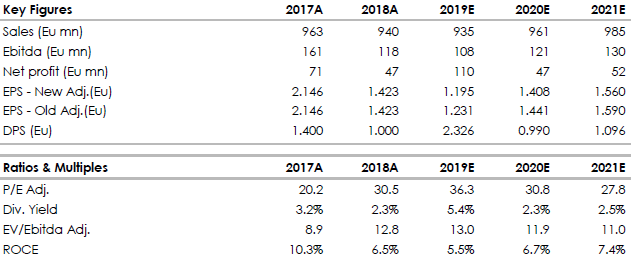 I dati del 2018 sono stati deludenti, le previsioni sul 2019 non sono confortanti. Abbiamo rivisto al ribasso le nostre stime di margini per il 2019. Il 2019 si dovrebbe chiudere con un utile netto adjusted di 40 milioni, in calo rispetto ai 47 milioni del 2018 e ai 71 milioni del 2017.