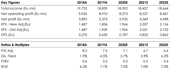 Per il 2020, sono previsti ricavi pari a 18,2 miliardi, con utile netto sottostante a 4,3 miliardi e Rote pari all’8%.
