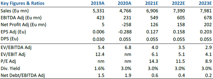 Indebitamento Finanziario Netto significativamente migliore del target: 441,9 milioni (631,4 milioni a dicembre 2019), grazie principalmente alla gestione del capitale circolante netto;