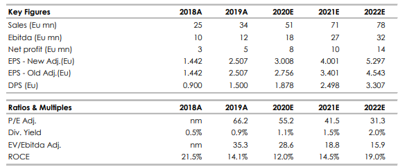 - Il prezzo pagato ci sembra equo. L’ammontare di 50 milioni di euro (100% cash), corrispondente al 100% del valore d’impresa, implica un multiplo di 6,8 volte il rapporto fra valore d’impresa ed Ebitda (Ev/Ebitda) 2019, che si colloca nella fascia superiore del range 4,5-7,1 volte delle passate acquisizioni fatte da Wiit tra il 2018 e il 2019 (Adelante 7,1volte, Matika 5,3volte, Etaeria 4,5volte, Aedera 4,6volte). Tuttavia, i valori si collocano ben ad di sotto dei multipli di Wiit (27volte il rapporto fra valore d’impresa ed Ebitda), nonostante il business delle società sia molto simile. Il management attribuisce questa differenza al fatto che il business di myLoc non coincide perfettamente con quello di Wiit, che è più esposta al segmento delle soluzioni “mission-critical”, che presenta alte barriere all’ingresso.