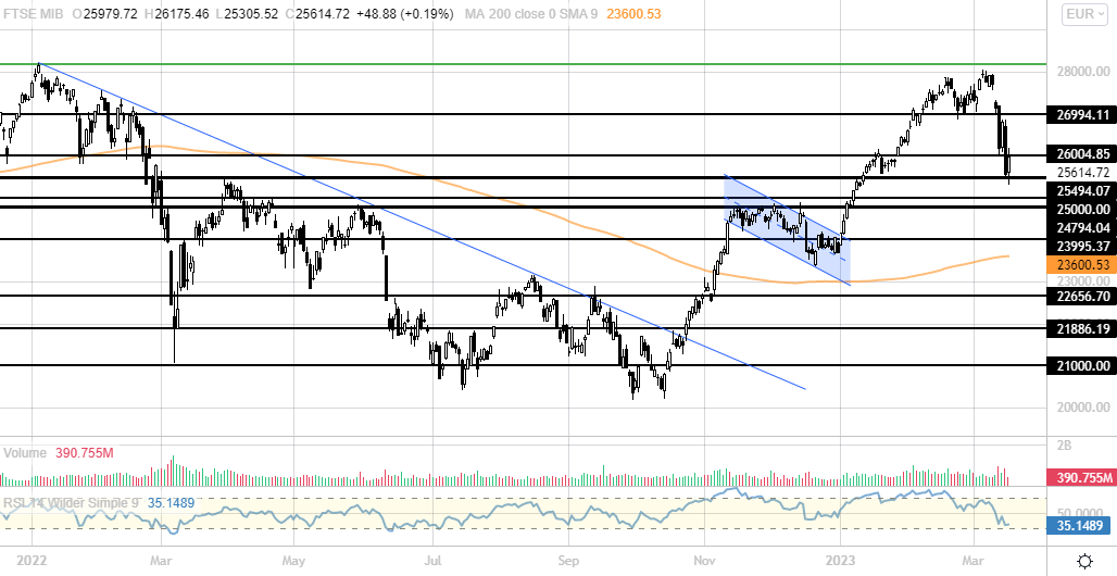 FTSE MIB (25.799,75 punti, +0,9%). L'indice rimbalza ma meglio attendere la chiusura per trarre qualche conclusione da un punto di vista tecnico. Le pressioni ribassiste sono infatti state molto forti nelle ultime sedute.