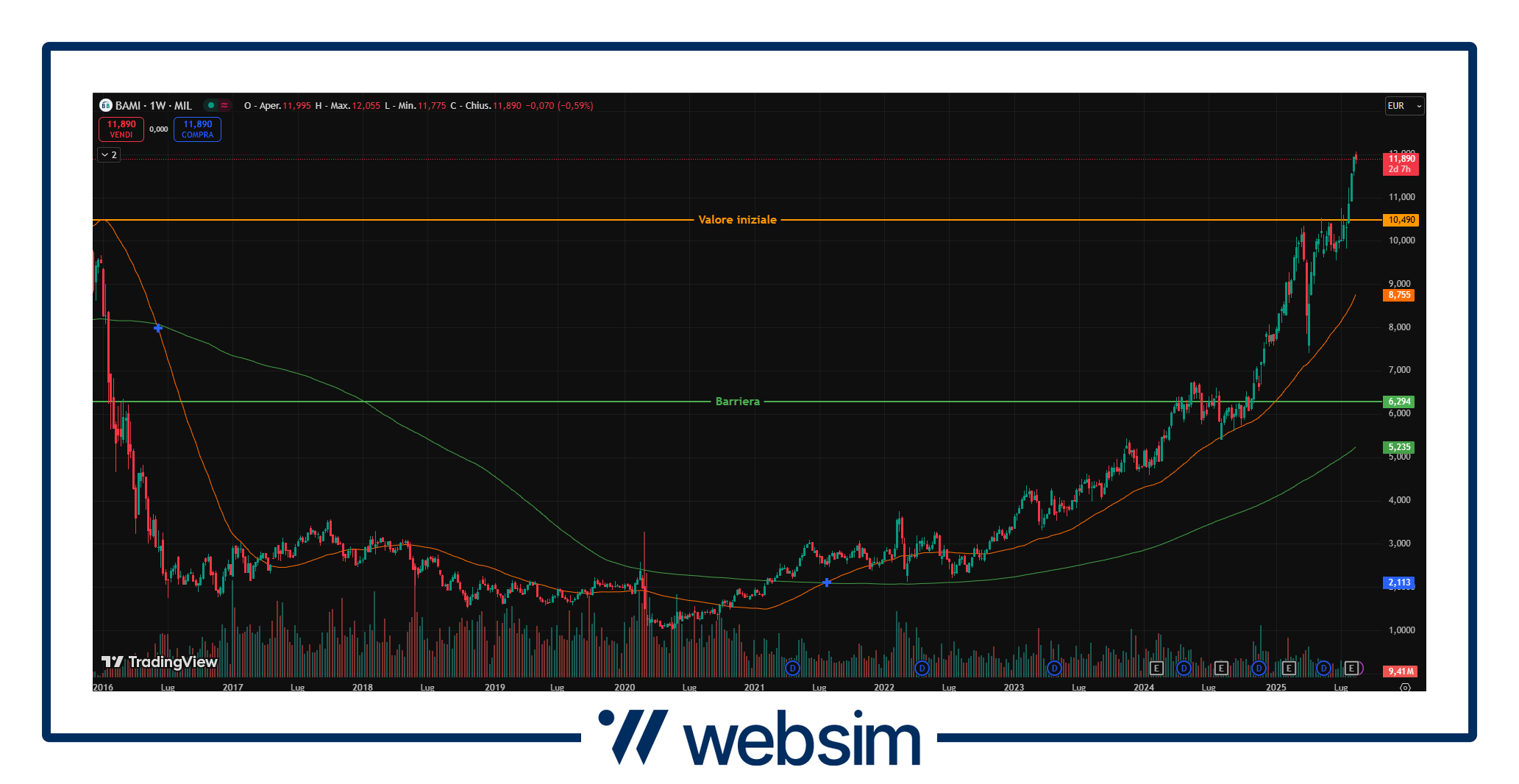 Dopo i diversi mesi passati sotto i riflettori, attenzione principalmente portata dalla possibile operazione di M&A che la vedeva coinvolta insieme ad Unicredit, possibilità ormai tramontata, la banca torna a far parlare di se con i risultati comunicati per il 2Q25, che hanno sottolineato principalmente l’impatto di Anima nel conglomerato finanziario: un contributo positivo che cambia il perimetro della banca, spostandolo di più sulle commissioni. Il titolo scambia attualmente in area 11,905 EUR, con un valore iniziale fissato a 10,49 EUR ed una barriera, come detto valida sia per coupon che per capitale a scadenza, a 6,294 EUR.