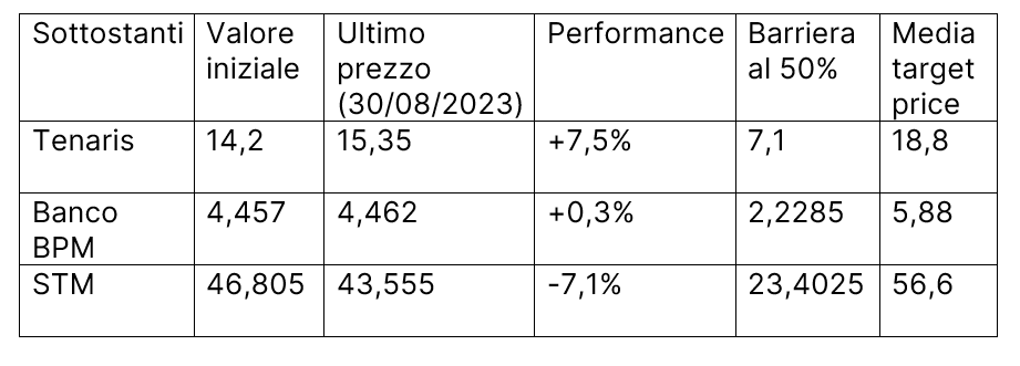 In arrivo il 19 settembre la maxi cedola del 14% incondizionata del certificato di BNP Paribas ISIN XS2281831995, con basket Tenaris, BPM e STM. Barriera a scadenza al 50%. Autocall da dicembre 2023.