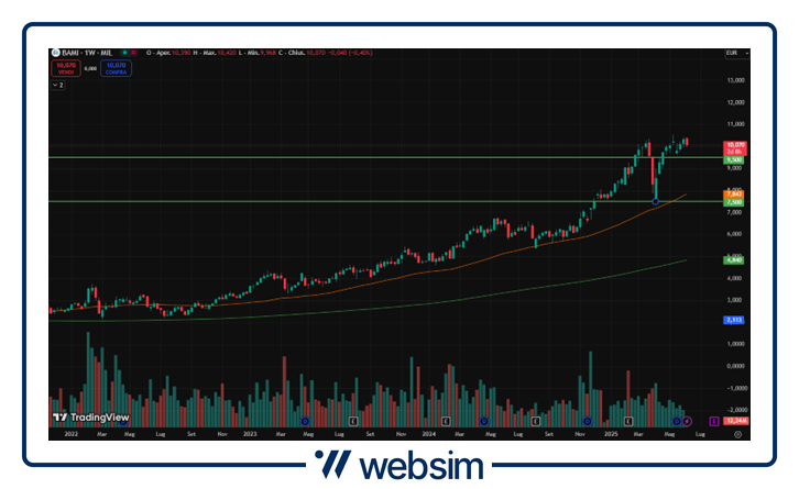 Inoltre, a sostenere le quotazioni dei titoli, ci sono anche la prosecuzione del consolidamento in Italia e gli altissimi dividendi promessi e pagati agli azionisti e i buyback. Consideriamo che solo Intesa e UniCredit dovrebbero procedere con circa 6/6,5 miliardi di buyback.