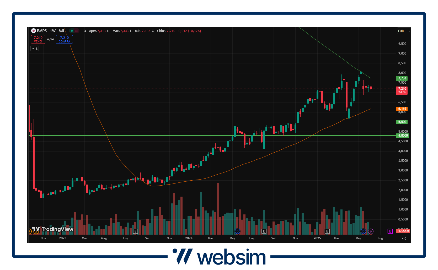 L’istituto senese è ormai da diversi anni al centro di molte discussioni, ma quello che ha caratterizzato ormai l’ultimo anno è stato lo switch della banca da un ruolo di possibile target ad acquirente. In tutto questo i risultati continuano a sostenere la qualità e solidità del trend che la caratterizza da ormai diverso tempo. L’ad Lovaglio si è detto più volte fiducioso che l'Ops lanciata dall'istituto senese su Mediobanca possa avere "adesioni importanti" anche se il 50% più un'azione è sufficiente per l'utilizzo delle Dta e premiare gli investitori, escludendo operazioni di potere nell’offerta e sottolineando le concrete ragioni industriali. Il titolo quota attualmente in area 7,2 EUR sostenuto da due supporti in area 5,5 EUR e 4,8 EUR.