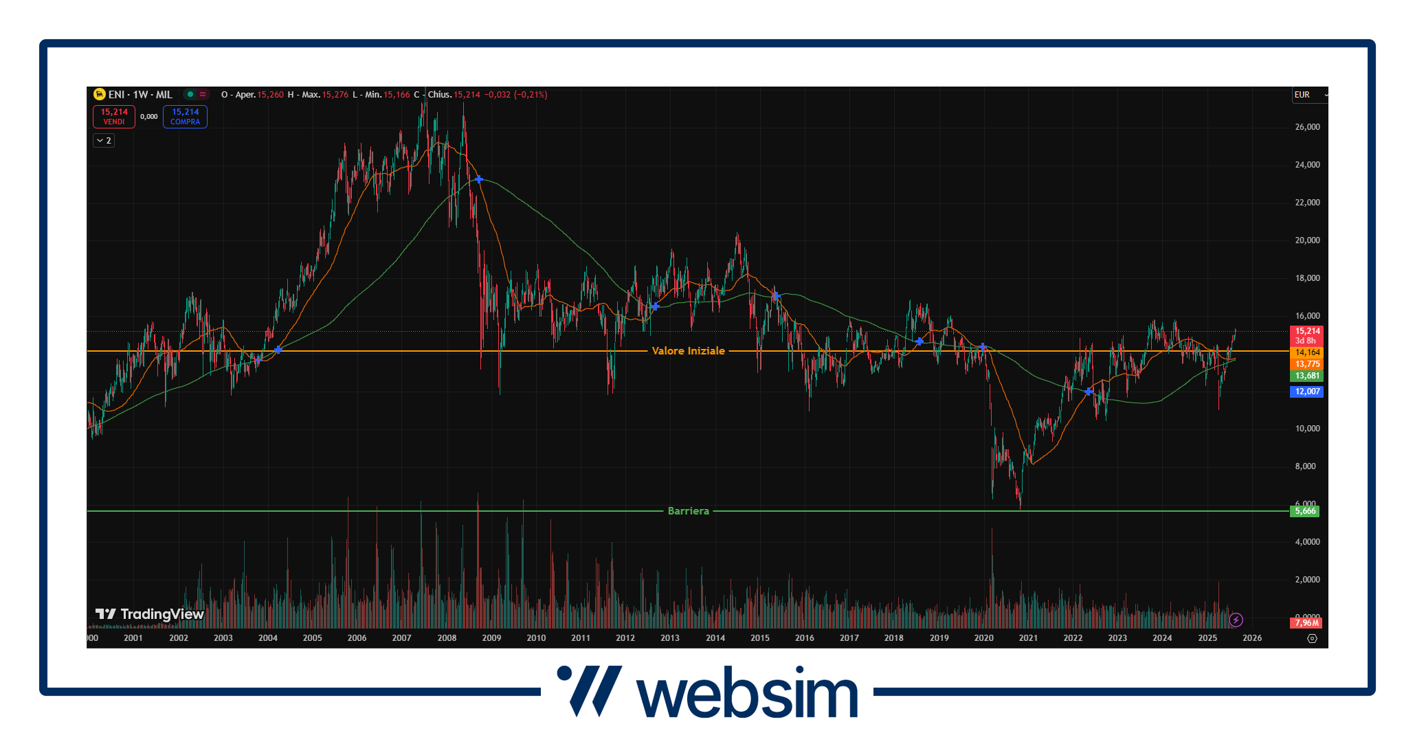 Per quanto riguarda Eni notizia di pochi giorni fa è la firma dell’accordo con GIP relativo alla cessione del 49,99% in Eni CCUS Holding (Carbon Capture, Utilization and Storage). L’accordo segue la trattativa esclusiva annunciata lo scorso maggio e prevede che Eni e GIP detengano il controllo congiunto della Società. Eni CCUS Holding attualmente opera attraverso le proprie controllate i progetti in UK di Liverpool Bay e Bacton e il progetto L10-CCS in Olanda. La Società ha inoltre il diritto di acquisire il 50% detenuto da Eni del progetto CCS Ravenna in Italia. L'obiettivo di Eni è quello di raggiungere oltre 15 milioni di tonnellate/anno di capacità di trasporto e stoccaggio di CO2 entro il 2030. Il titolo quota attualmente in area 15,218 EUR, con un valore iniziale fissato a 14,164 EUR e barriera a 5,6656 EUR.