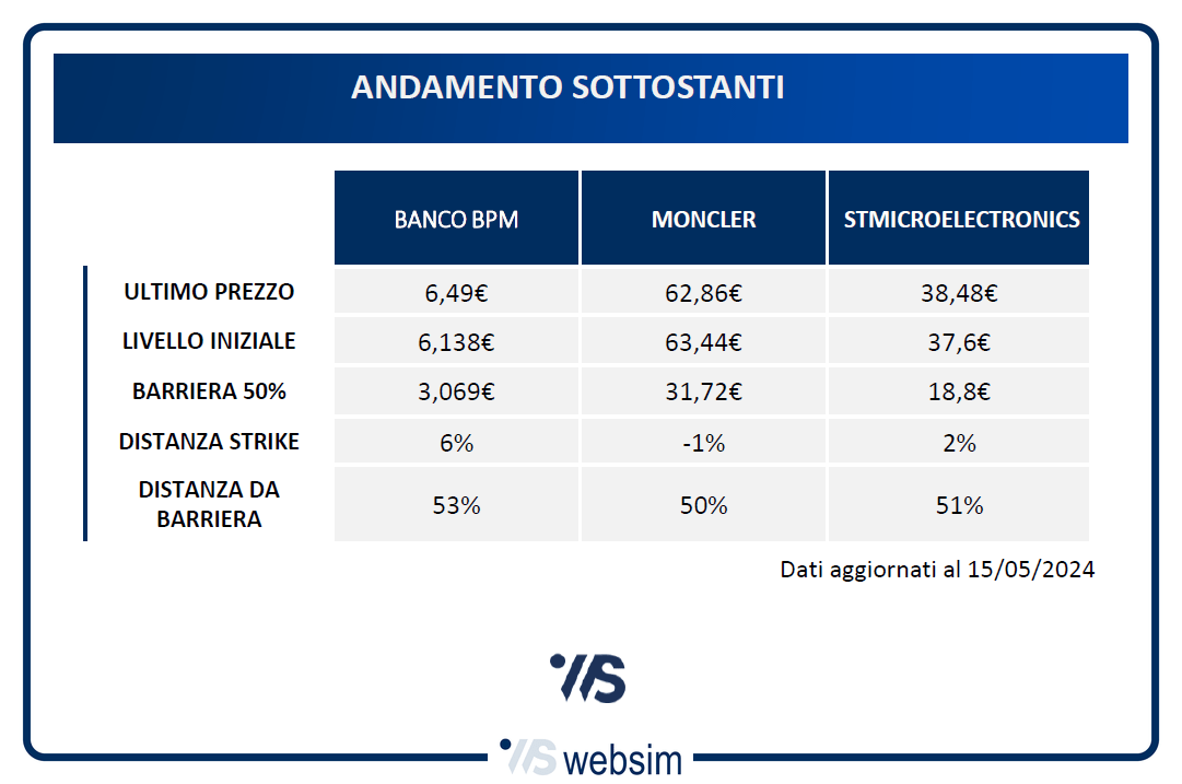 E che dire dei sottostanti? Un basket worst of di titoli di tutto rispetto: Banco BPM, Moncler e STMicroelectronics, tre colossi di Piazza Affari ben posizionati sia dal punto di vista grafico che sui fondamentali. Si presenta bene anche la durata del prodotto che, con una scadenza prevista per giugno 2027, offre agli investitori un orizzonte temporale ragionevole per poter sfruttare a pieno dei suoi vantaggi.
