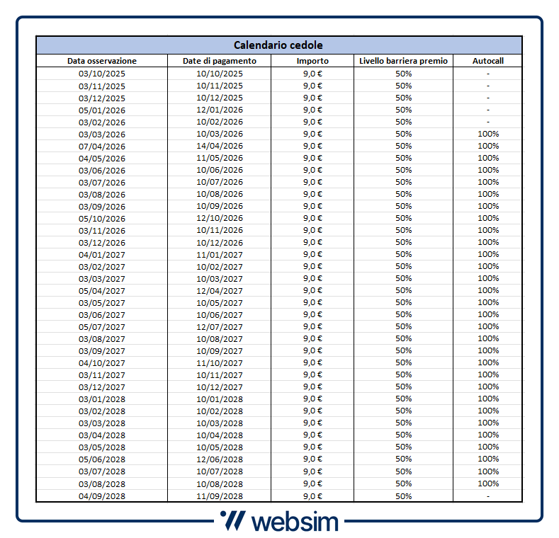 - Autocall: da marzo 2026, con trigger fisso al 100% del livello iniziale