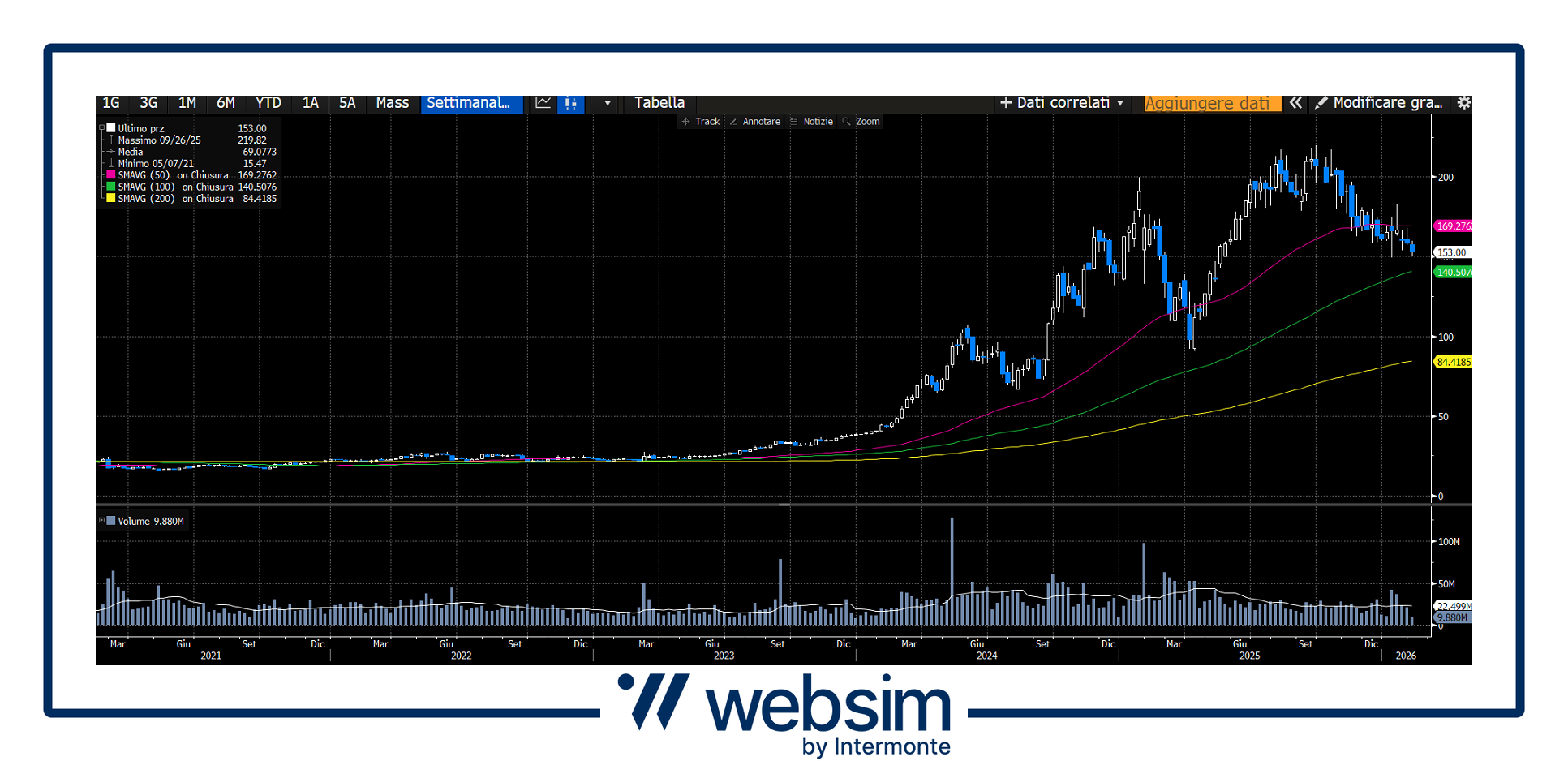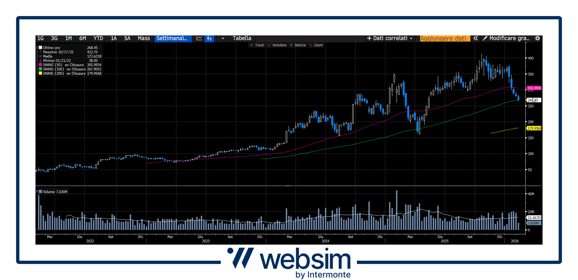Il titolo resta inserito in un trend rialzista di lungo periodo, con la recente correzione che appare come una fase di consolidamento sopra le medie di medio-lungo termine, dopo il forte rally degli ultimi anni.