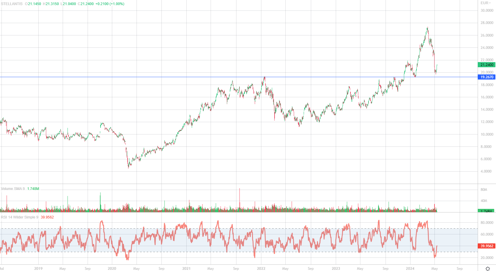 Su Stellantis il discorso è diverso. Dopo i conti del primo trimestre, il titolo ha subito una profonda correzione che ha riportato i prezzi sul supporto a 20 euro, livello da cui cerca la reazione. In termini relativi la società rimane interessante. È infatti tra quelle ad aver riportato la marginalità più alta. Questa marginalità viene fuori dall’aver spinto sui prezzi più degli altri e dal lavoro di contenimento costi. Stellantis ha avuto infatti un incremento del costo per veicolo molto più basso dell’inflazione. E questo sia per la pressione sui supplier che per i benefici dall’integrazione delle piattaforme e delle sinergie della fusione. Non ha avuto buoni numeri da inizio anno è vero, ma va detto che i numeri del 2023 erano stati pompati dall'effetto restoking. Ricordiamo, infatti, che i numeri di Stellantis non dipendono dalle vendite finali ma ai concessionari e nel 2023 avevano venduto ai concessionari più di quello che i concessionari avevano a loro volta venduto all’esterno. Quindi, semplicemente, non era un trend sostenibile. Ora il management deve preparare il lancio di nuovi modelli e le concessionarie devono avere il tempo di ridurre le scorte, altrimenti non possono vendere i nuovi modelli a prezzi più alti. Quindi, con molta probabilità, in termini di fatturato i primi nove mesi di Stellantis non saranno belli ma la marginalità rimarrà ottima, superiore al 10%. Per un settore che sconta un futuro poco roseo non è poco. Stellantis vanta anche un free cash flow molto importante che rende il titolo più stabile. Inoltre, è meno esposta alla Cina che, in questo momento, è un plus. Invece è molto esposta agli USA che è, in questo momento, l’economia più forte. Quindi rispetto alla concorrenza è la società messa meglio.
